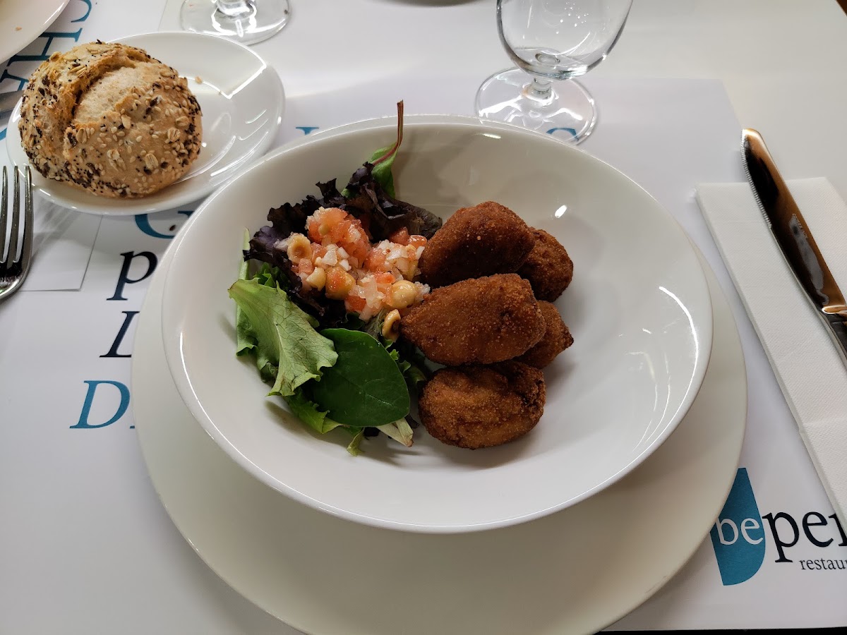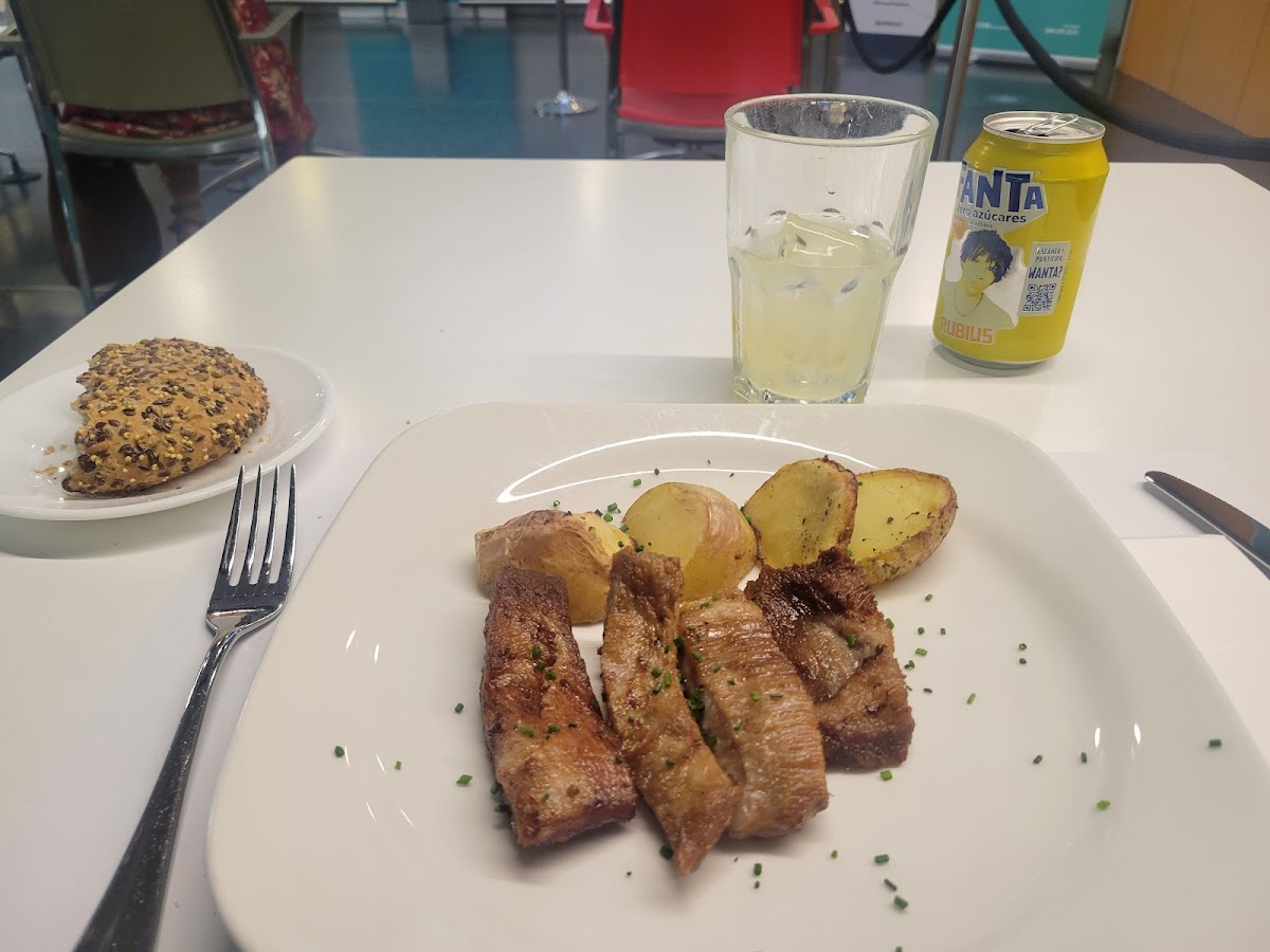 The menu covers typical cafeteria fare with a few notable items like croquetas de cocido, pintxo de tortilla de patata, chipirones con salsa americana, and some dessert options including tarta de queso and pudding. The offerings are straightforward and well-portioned, designed more for nourishment and comfort than culinary adventure. Prices hover slightly above average for Madrid cafeterias, reflecting the hospital setting.